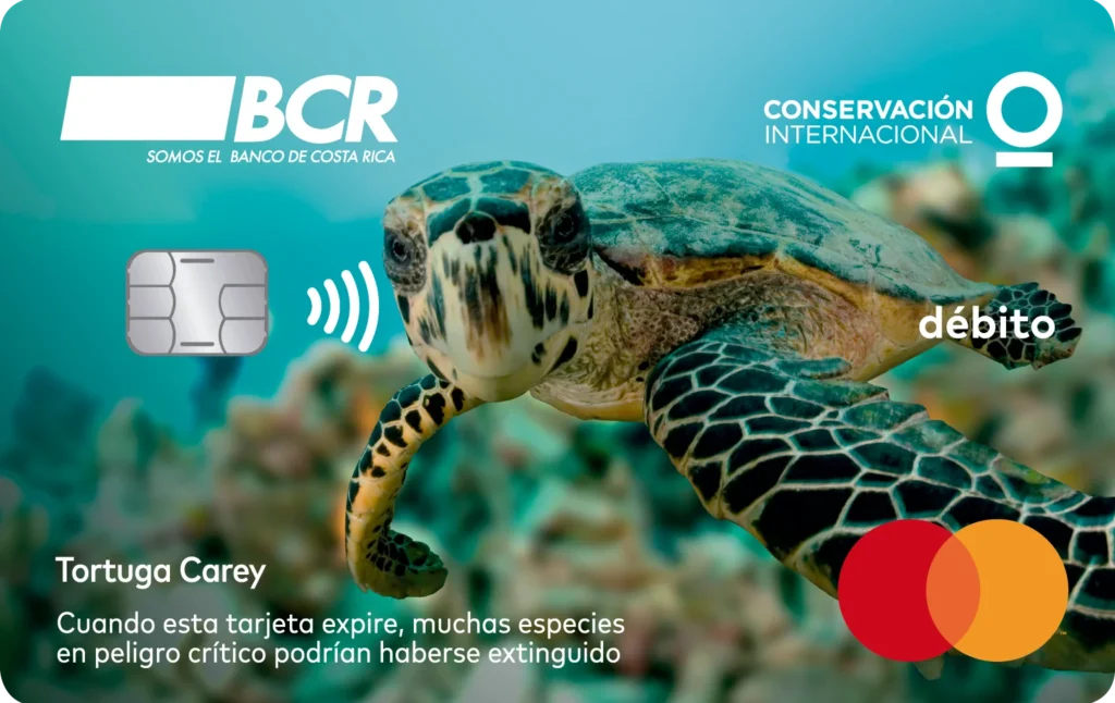 La Tortuga Carey es tan representativa para la fauna costarricense que el BCR tiene en su portafolio de medios de pago una tarjeta de débito en su honor, cuyo plan de lealtad permite a los consumidores ayudar a proteger los hábitats de la vida silvestre.