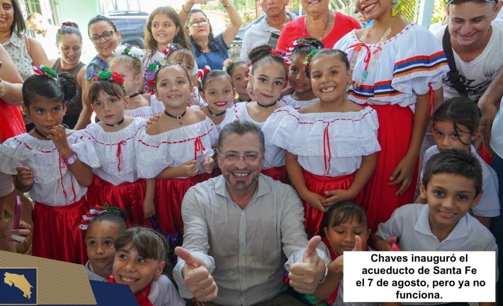 El pasado 7 de agosto el Presidente Rodrigo Chaves viajó a Cóbano para inaugurar el nuevo acueducto de Santa Fe y anunció que, para llevar agua potable a 7.900 habitantes de Santa Fe y alrededores, se construyó un nuevo tanque, se activaron pozos, tuberías y mejoras en el sistema, sin embargo, esos mismos beneficiarios denuncian que el sistema no funciona y todavía no les llega el preciado líquido.