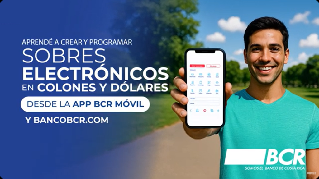 Para crear un Sobre Electrónico, Ahorro Automático o CDP el cliente solo debe ingresar al App BCR Móvil o a la Oficina Virtual por medio del sitio web: www.bancobcr.com.