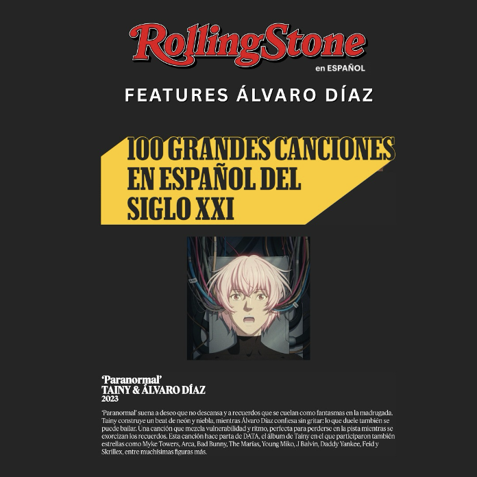 SU CÉLEBRE CANCIÓN “PARANORMAL” CON TAINY FUE INCLUIDA EN EL LISTADO 100 GRANDES CANCIONES EN ESPAÑOL DEL SIGLO XXI DE ROLLING STONE EN ESPAÑOL LA SEMANA PASADA
