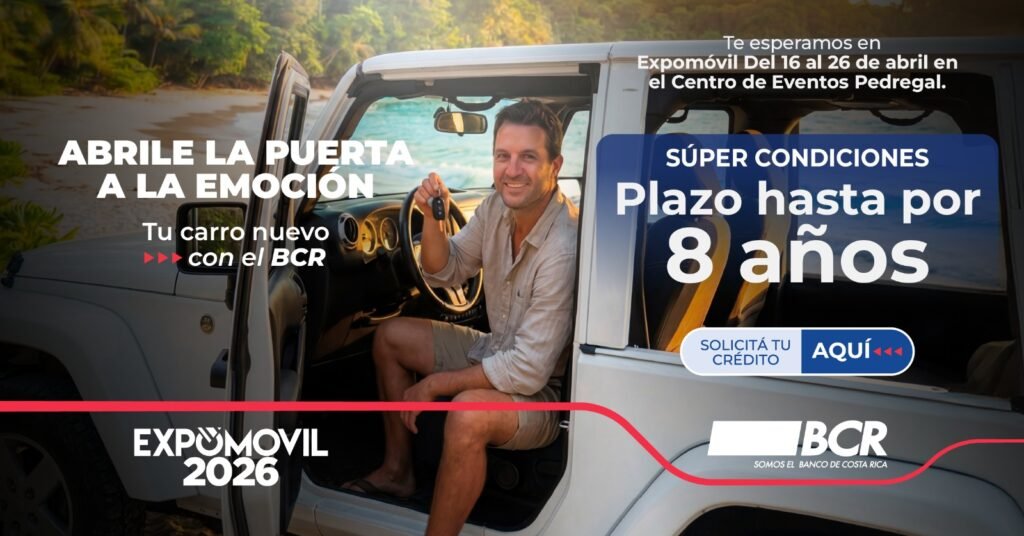San José 16 de abril, 2026. Adquirir un vehículo nuevo de combustión o de energías limpias es muy sencillo con la atractiva oferta de financiamiento que el Banco de Costa Rica (BCR) ha desarrollado exclusivamente para Expomóvil 2026. Uno de los elementos diferenciadores de esta propuesta es que el Banco aprobará de inmediato los créditos a las personas que presenten su comprobante de ingresos. Además, el plazo de financiamiento es de hasta ocho años sin distinción de moneda.