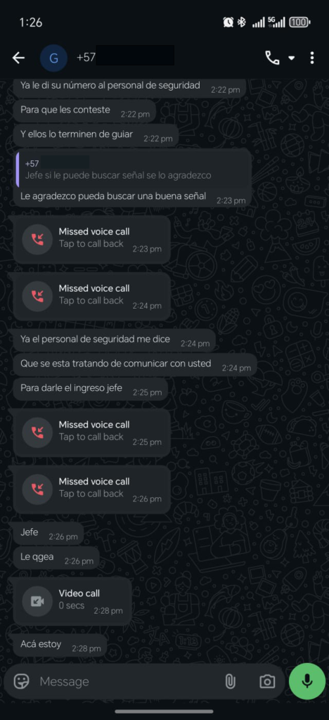 De acuerdo con información que ha circulado recientemente en el país, este tipo de contactos podría  estar vinculado con modalidades de engaño o “falsos secuestros”, y posteriormente los delincuentes  buscan presionar a los familiares o las empresas para exigir dinero.