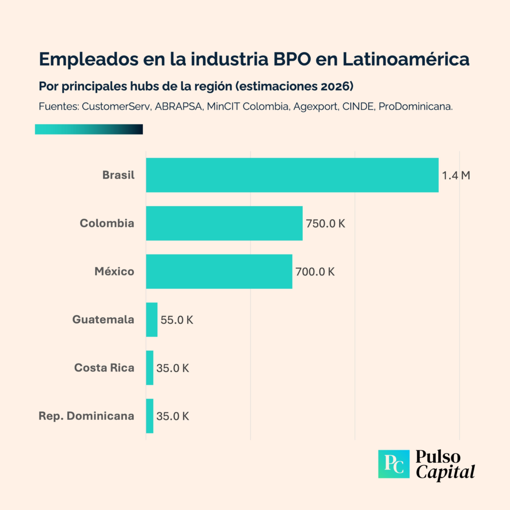 Televisa eliminará call centers humanos de Izzi y Sky para reemplazarlos con IA. La industria de BPO en Latinoamérica no es poca cosa. Brasil emplea a cerca de 1.4 millones de personas en call centers y servicios de tercerización. Colombia supera los 750,000 empleos directos en el sector, aportando 3.5% de su PIB. México ronda los 700,000 trabajadores. Guatemala, que ha construido uno de los hubs más dinámicos de Centroamérica, ya supera los 55,000 empleados. Costa Rica y República Dominicana completan el mapa con decenas de miles de puestos cada uno.