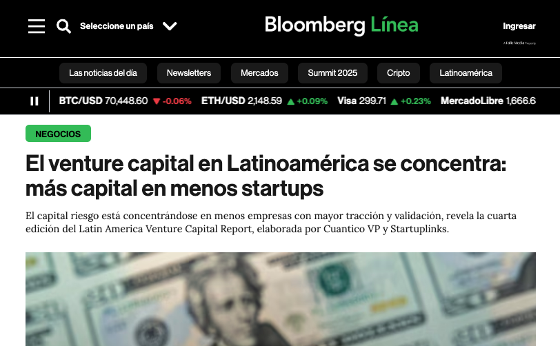 El Latin America Venture Capital Report 2026, elaborado por Cuantico VP revela un ecosistema que se recupera en capital pero no en volumen de operaciones, con una concentración sin precedentes en dos países,un solo sector y las etapas intermedias del funnel de inversión. Conoce las métricas clave del capital de riesgo en la región que te harán destacar en cualquier conversación relacionada con la industria de tecnología, innovación y negocios. Desde Bloomberg.