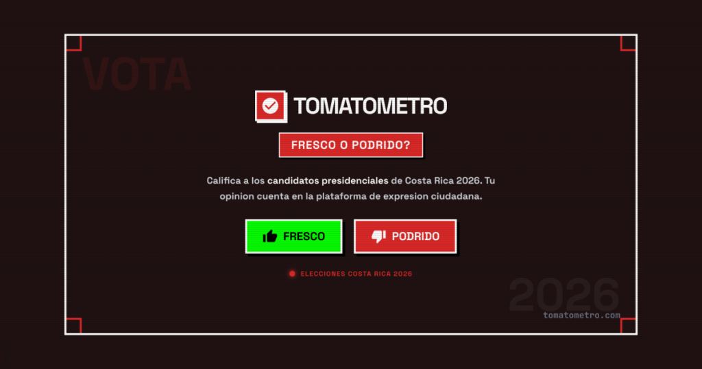 San José, Costa Rica, 15 de enero de 2026. Dojo Coding presentó hoy Tomatómetro (www.tomatometro.com), una plataforma digital gratuita que permite a los ciudadanos costarricenses expresar su opinión sobre los 20 candidatos presidenciales inscritos para las elecciones del próximo 1 de febrero. La herramienta, desarrollada en alianza con Academia de Libertad, utiliza una experiencia interactiva y visual para acercar la conversación política a las nuevas generaciones.