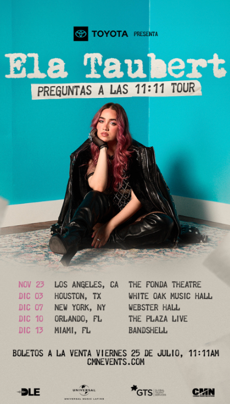 Próximamente, ELA se prepara para dar inicio a la etapa por Estados Unidos el 23 de noviembre en el Fonda Theatre de Los Ángeles. La gira por Estados Unidos, patrocinada por Toyota, incluirá paradas en Houston, Nueva York, Orlando y Miami. Con esta gira ELA TAUBERT demuestra que es una de las promesas del pop, capaz de emocionar a sus oyentes con unas letras que permiten a todos sentirse identificados.