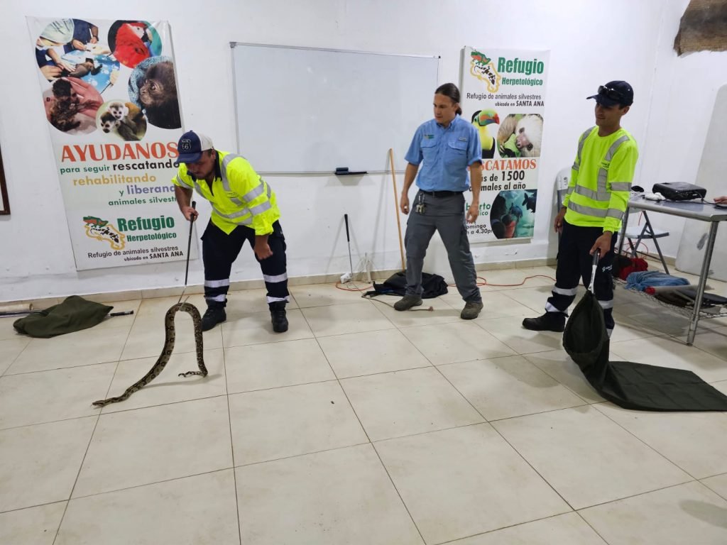 La formación incluye el reconocimiento de especies venenosas y en peligro de extinción, la detección de fracturas, y técnicas de manejo que previenen daños tanto al animal como al personal. Todo esto es impartido por profesionales del Refugio Animal de Costa Rica en Santa Ana.