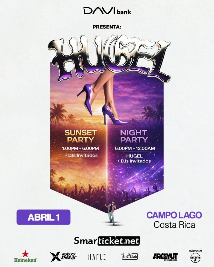 La escena electrónica en Costa Rica se prepara para uno de los eventos más esperados del año. El próximo 1 de abril, el reconocido DJ internacional HUGEL aterriza en Campo Lago con una propuesta que combina atardecer, fiesta nocturna y una producción de alto nivel.