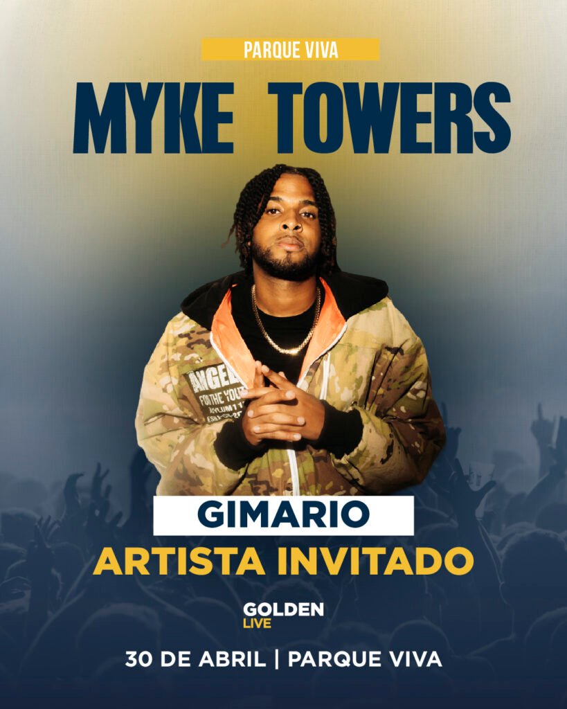 GOLDEN LIVE cree profundamente que Myke es una referencia e inspiración para nuestros artistas por lo cual la productora se siente muy feliz de apoyar a nuestro talento tico, nos complace anunciar a Gimario y Haquil quienes vienen trabajando muy fuertemente sus carreras, con canciones que se han colocado en los primeros lugares de los charts radiales y digitales, serán los artistas que compartirán tarima con Myke Towers en este gran show.