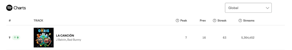 El renovado éxito del álbum trasciende las listas. Solo en la última semana, “La Canción”, el quinto tema del proyecto, escaló al #7 en el ranking global de Spotify y entró al Top 10 en 16 países, incluidos Suiza, Colombia, Canadá y Portugal, reafirmando el alcance internacional y la vigencia cultural de este trabajo emblemático.