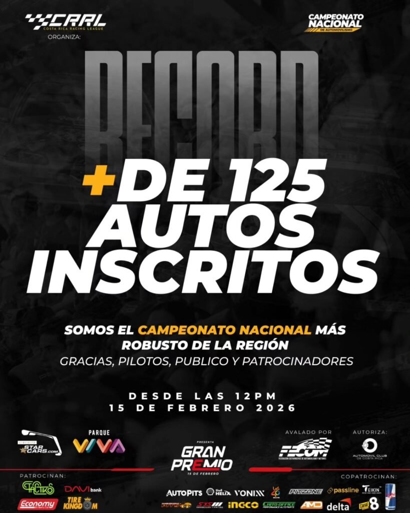 Esta cifra convierte al certamen en el campeonato nacional más robusto de la región, reflejando el crecimiento del automovilismo costarricense y la confianza de equipos y pilotos en la estructura deportiva impulsada por Costa Rica Racing League (CRRL).