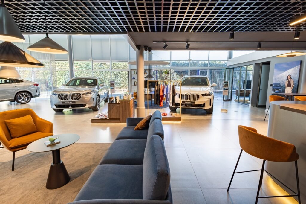 El espacio incluye áreas de bienvenida (Welcome Area), zonas de asesoría personalizada, salas de negociación (Sales Lounges), BMW Lounge, espacios de co-working y un área multifuncional para entrega de vehículos y atención ágil (Fast Lane), generando un entorno más cercano, cómodo y alineado con la experiencia premium de la marca.